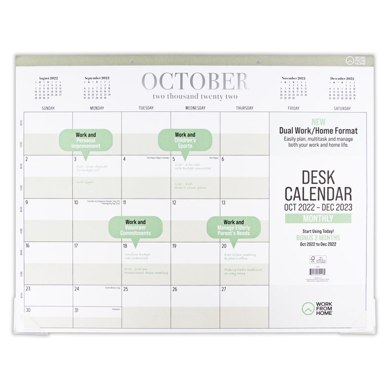 Work from Home Monthly Desk Pad Calendar, Oct 2022 Dec 2023 (17